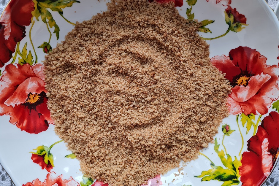 Сначала поговорим о печенье. Нужно самое простое овсяное печенье без вкраплений геркулеса, шоколада, изюма. Перекрутите его на мясорубке или измельчите с помощью блендера.