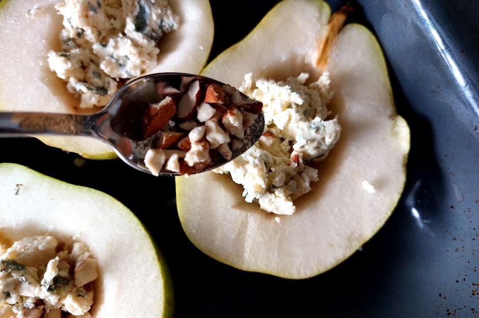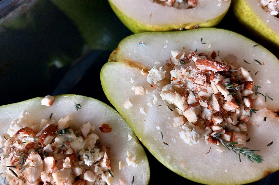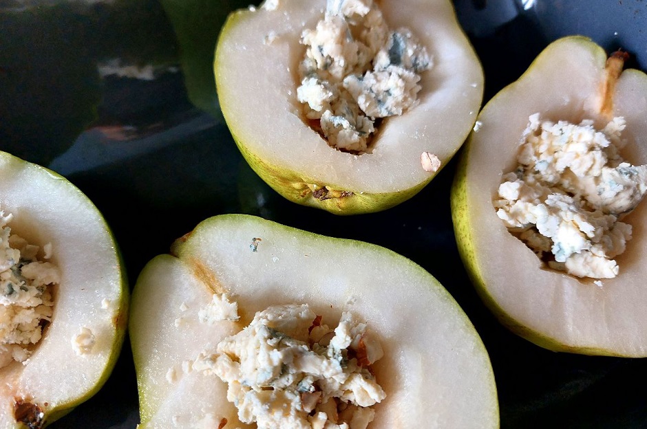 Элементарный десерт или элегантная закуска под … (Роскомнадзор всё еще не разрешил писать о напитках, кроме чая). Лайфхак для любителей сыра: удаляйте больше сердцевины. Мне сыра показалось мало, а вот любителям груш начинки было в самый раз.