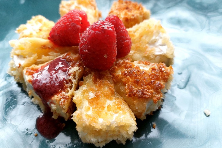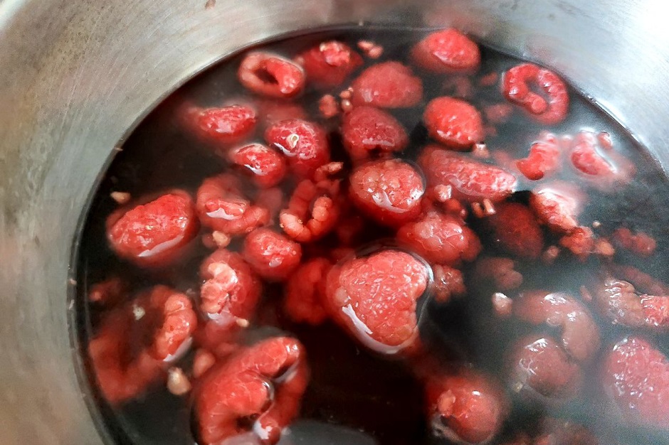 Готовим соус. В сотейнике доводим вино до кипения, добавляем ягоды и кипятим 2–3 минуты. Снимаем с огня, взбиваем все блендером. Готово. Можно красиво полить поверх сыра, а можно налить в пиалу и обмакивать кусочки сыра, запивая чем-нибудь, что Роскомнадзор писать не велит.