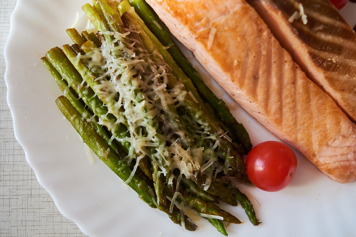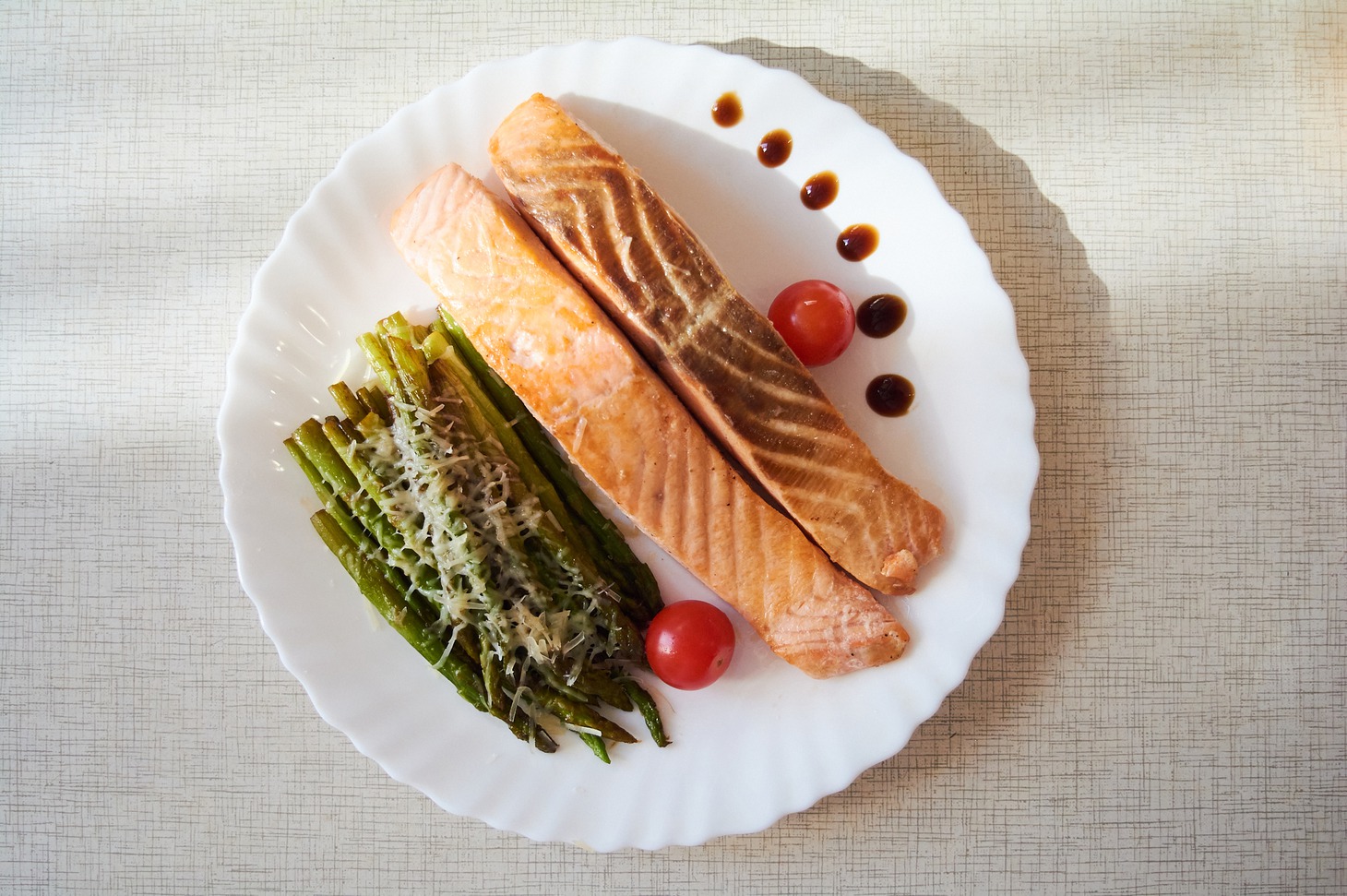 Интернет-магазин ETExpress продолжает радовать ассортиментом продуктов ресторанного уровня, а значит, можно продолжать готовить из них ресторанные же блюда. В такую погоду хочется чего-то легкого, например, стейка из лосося со спаржей и салата. Их и приготовим.