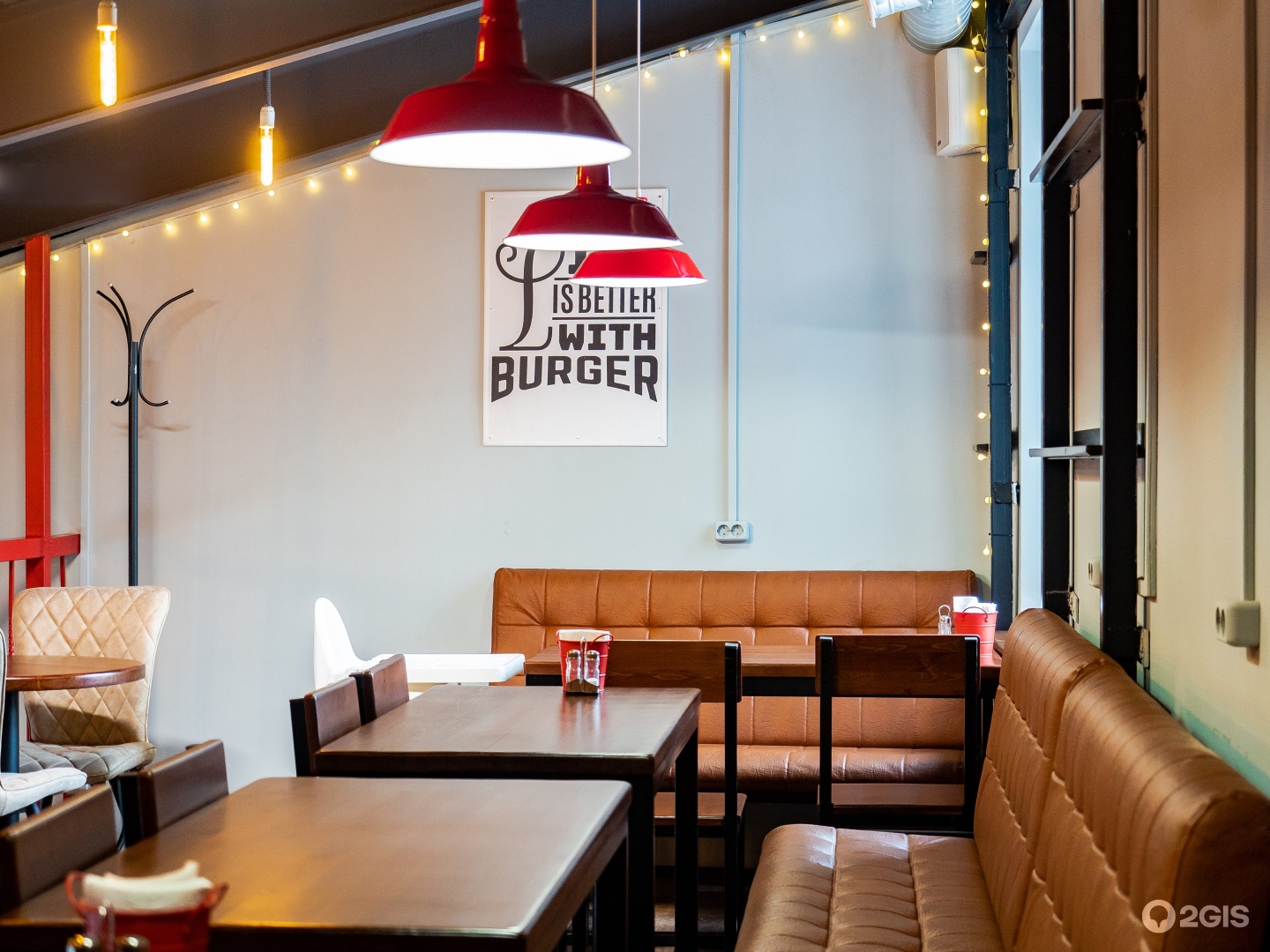 В заведении есть открытая кухня и можно посмотреть, как жарятся на гриле котлеты из мраморной говядины и выпекаются фирменные картофельные булочки (они действительно воздушные и мягкие). Уютный зал, второй этаж и небольшая веранда, приятная музыка в стиле кантри. В кафе есть настольные игры, а все блюда готовятся очень быстро (5-10 минут).