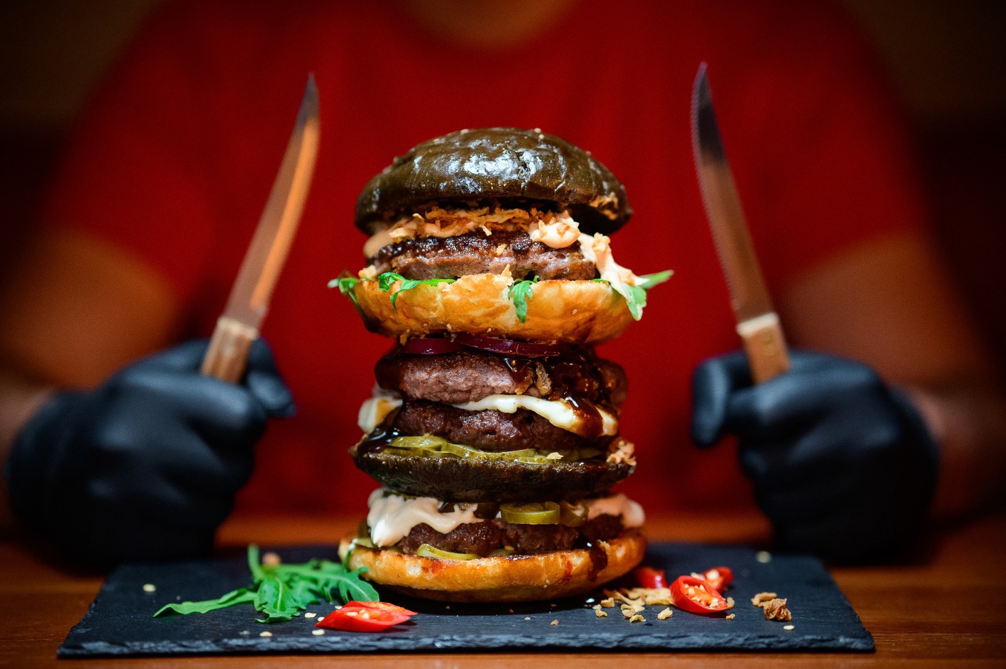 Но всё же рекомендуем попробовать только приготовленный бургер прямо в заведении, пока булочка еще хрустящая и котлета максимально сочная!