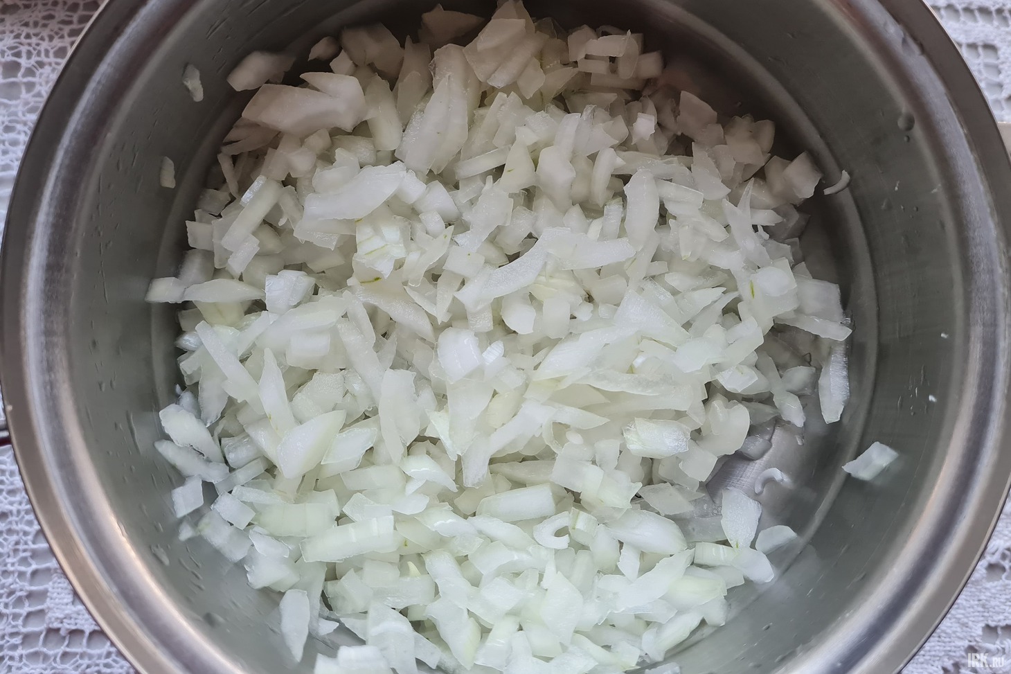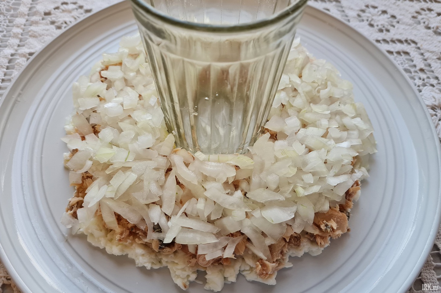 Третий слой – подготовленный репчатый лук. Он должен уже остыть до комнатной температуры.