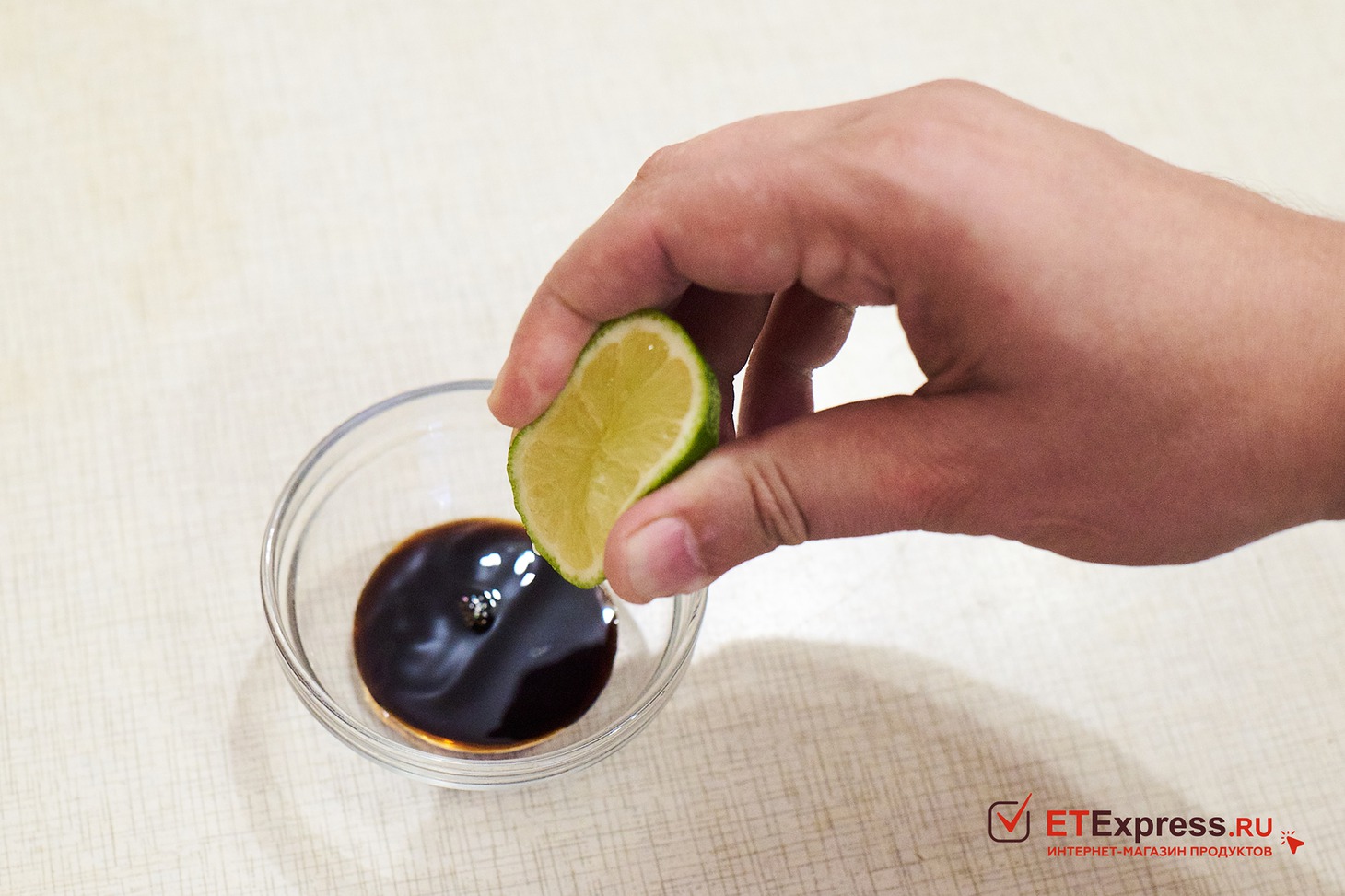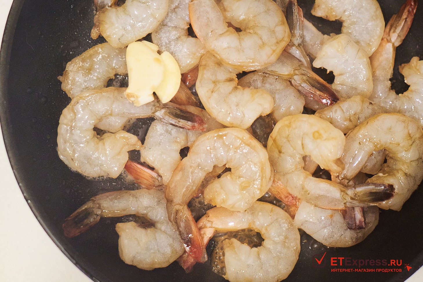 Пять минут маринуем их в соевом соусе и выкладываем на разогретую скороводку. Туда же отправляем раздавленный зубчик чеснока. Жарим по паре минут с каждой стороны и снимаем с огня.