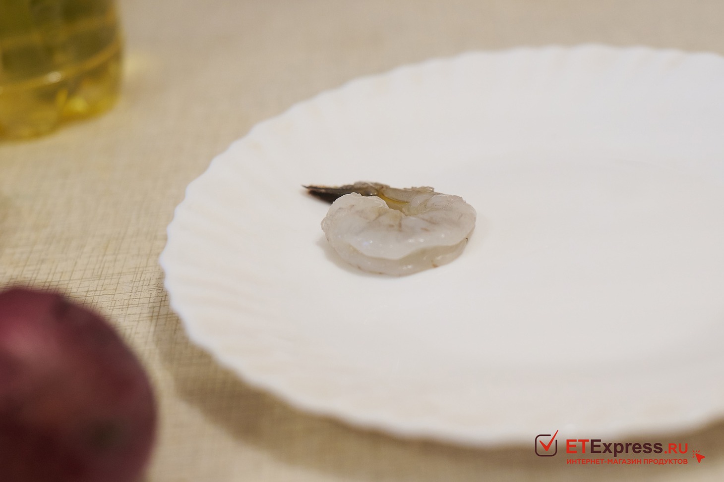 Размораживаем нашего ягненка и креветки. Кстати, помните, в прошлый раз мы старательно вычищали из креветок их маленькие креветочные кишочки? Сейчас так делать не надо, потому что креветки уже заботливо очищены.