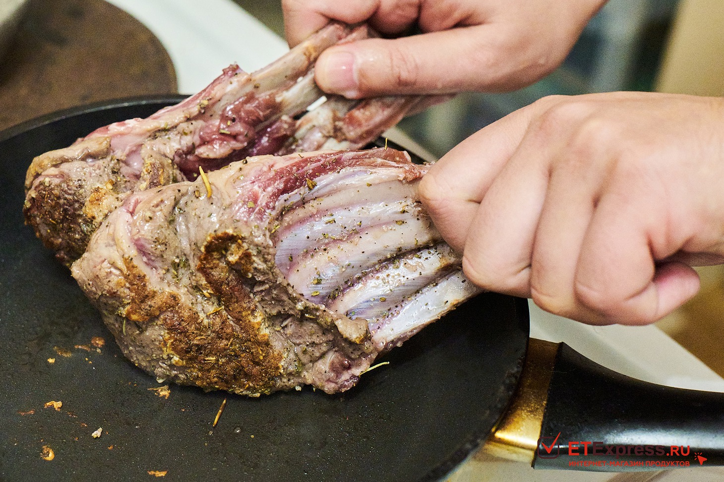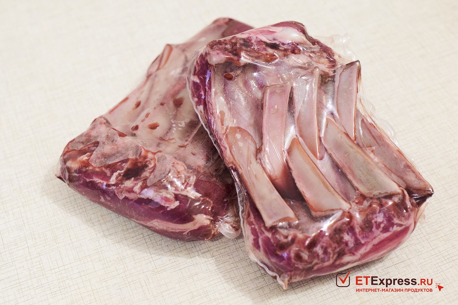 — каре ягненка (не стрижка) – 1 упаковка. Самая нежная часть барашка – спинка с ребрышками.