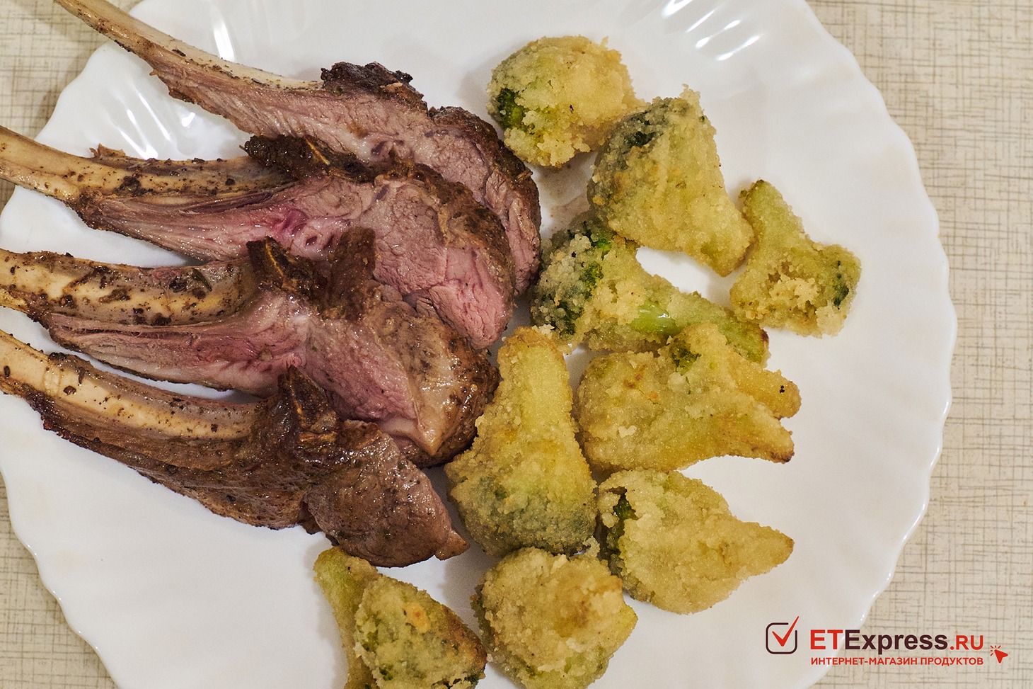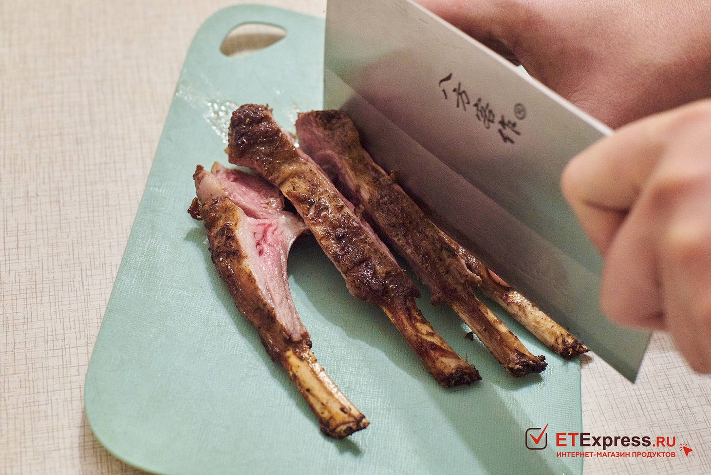 Вернемся к нашим баранам. Точнее, ягнятам. В трехсотграммовой упаковке помещается два аппетитных кусочка по четыре ребра в каждом.