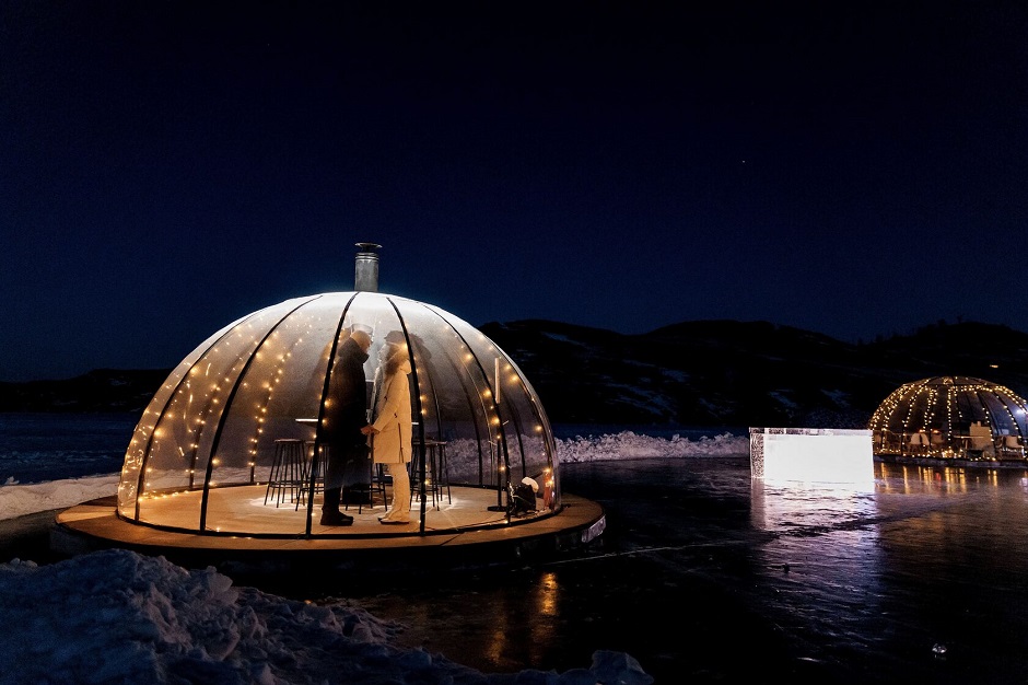 Гастропроект на льду Байкала впервые запустился еще в феврале 2023 года. Этой зимой, с 8 января, стартовал второй сезон работы ресторана. Здесь расположились ледяной бар, купол-жаровня и купол-ресторан и интерактивная территория с ледовыми объектами. Гости, заранее забронировав время, могут здесь пообедать и провести время. Работать «заведение» будет приблизительно до конца марта. Предупреждаем сразу — подготовьте кошелек.