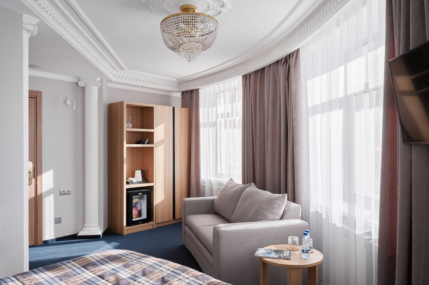 — Некоторые элементы, которые ассоциируются с отелем «Маяк», мы оставили неизменными: это колонны, лепнина. В итоге получили сочетание современности и классического дизайна. Конечно, заменили мебель, обновили отделку, двери, в санузлах полностью поменяли плитку на керамогранит итальянского качества.
