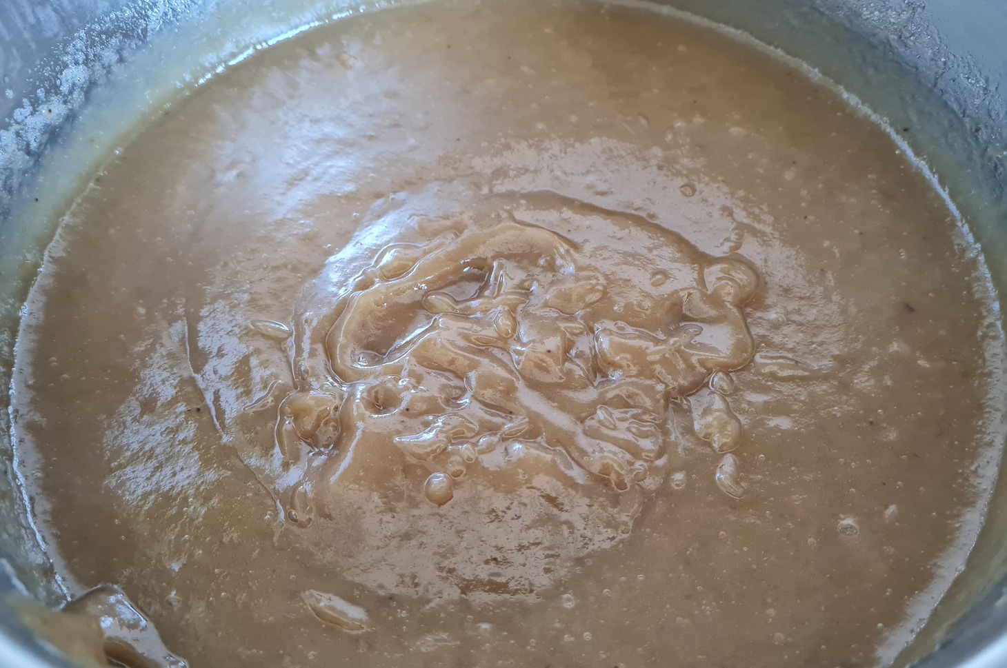 Теперь, чтобы пюре было более густым, можно слить часть сиропа через дуршлаг. Я иногда сливаю примерно 300 миллилитров. Но в этом сезоне я не сливала сироп, так как консистенция меня устроила. Пюрируйте массу блендером до воздушного состояния. Конечно, цвет пюре непрезентабельный, но я не советую ничем подкрашивать, дабы не изменить его уникальный вкус.