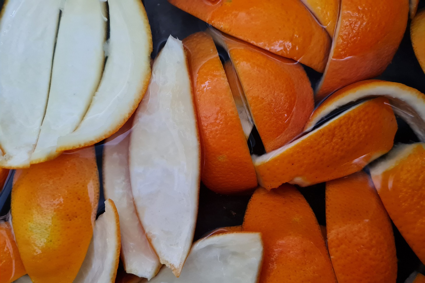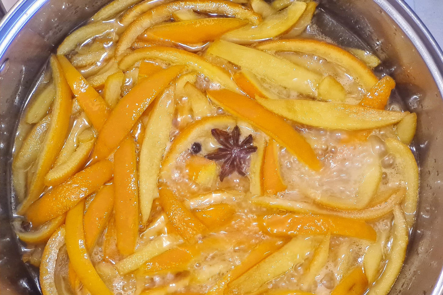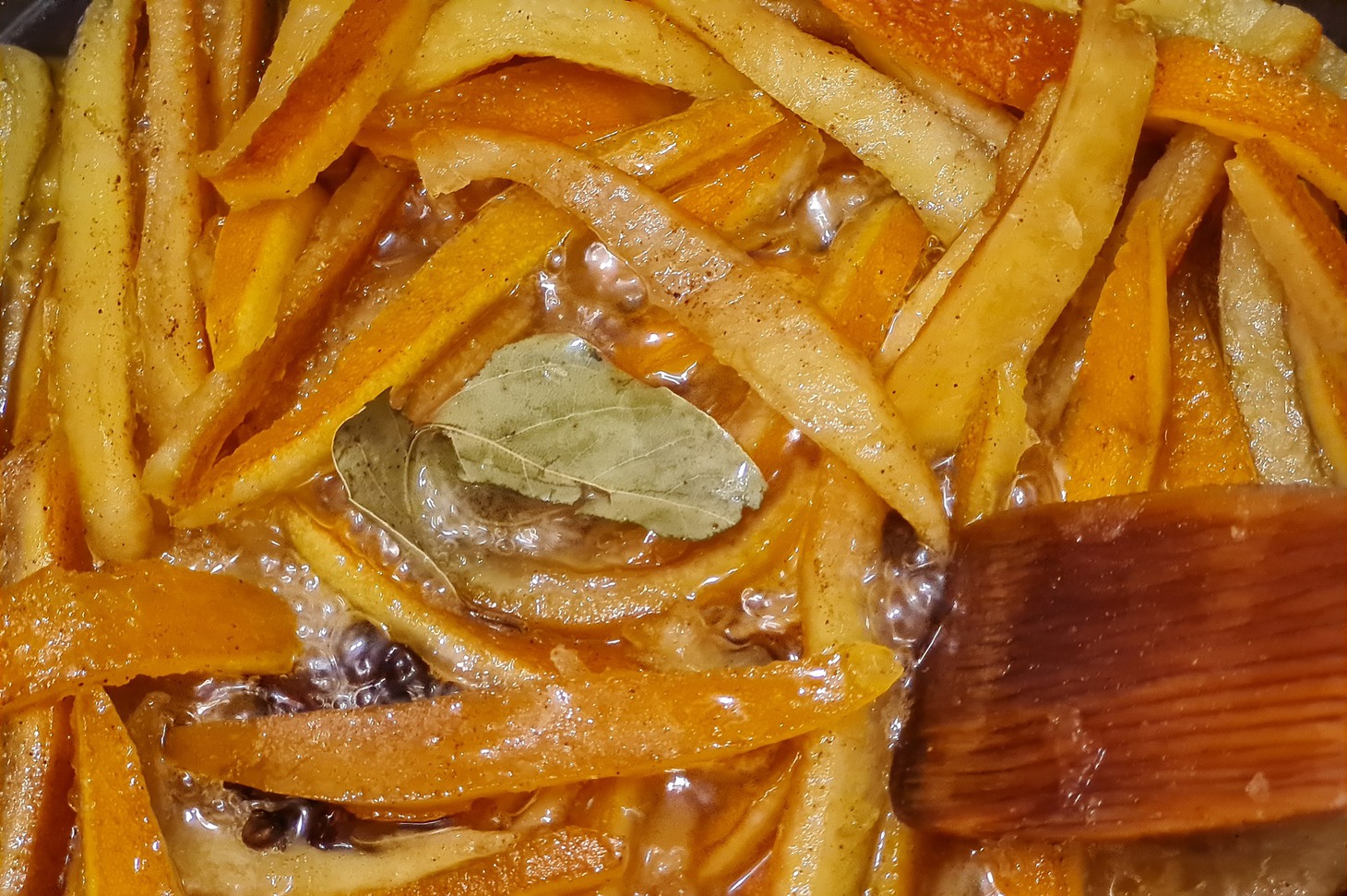 Процесс продолжительный, но он того стоит. Приготовьте и поймёте, о чём я. Помню, как 15 лет назад сестра привезла апельсиновые цукаты из рождественской Германии. На золочёном бумажном подносе лежали красиво упакованные цукаты из корок примерно одного апельсина. Конечно, вкусно и красиво, но цена — 400 рублей! И это 15 лет назад. Да у нас и купить их было негде. Эти обстоятельства подтолкнули меня готовить цукаты самостоятельно. И делаю я их не только из апельсиновых корок, но из корок лимона и помело.