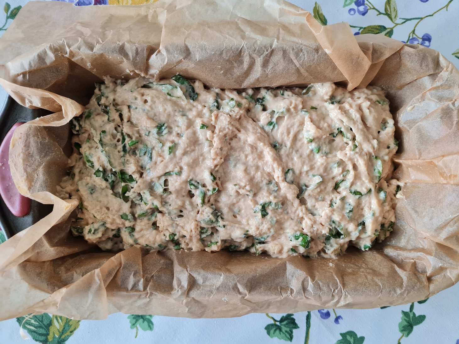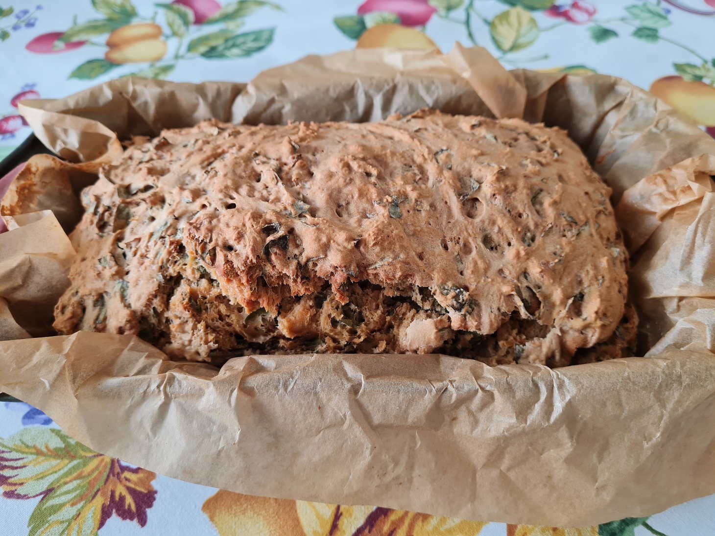 Поставьте форму с тестом в разогретую до 180 градусов духовку на час. Я помещаю выпечку в середину. Вот такой аппетитный хлеб получается.