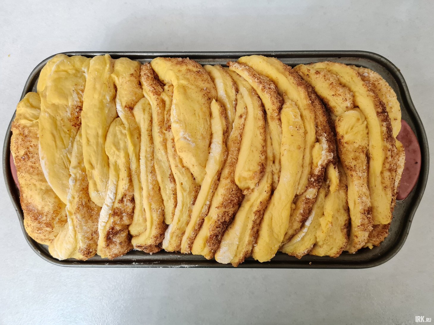 Выложите их (к сахарной стороне – сторону без сахара) в форму, смазанную маслом, примерно как показано на фото. Форма у меня с тефлоновым покрытием. Размер – 10 на 30 сантиметров. Пойдет и силиконовая, и из огнеупорного стекла или керамики.