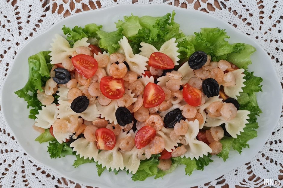 Салат «Неаполитанский» с креветками и пастой фарфалле точно достоин праздничного стола. В рецепте Елены Антипиной в качестве вкусного азиатского акцента добавлен также домашний сладкий чили.