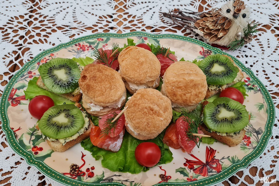 Елена Антипина предлагает попробовать три легких рецепта. В двух из них используется рыба, для бутербродиков не забудьте подготовить киви, а для буше (с французского – «один укус») – грейпфрут.