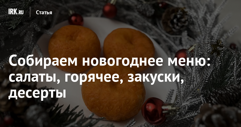 В меню для вкусной встречи Нового года мы включили салаты, горячее, десерты и закуски. Здесь есть как проверенные временем рецепты от постоянного автора Елены Антипиной, так и блюдо от журналиста Арины Филипповой, которое подойдет тем, кто и во время праздников следит за фигурой.