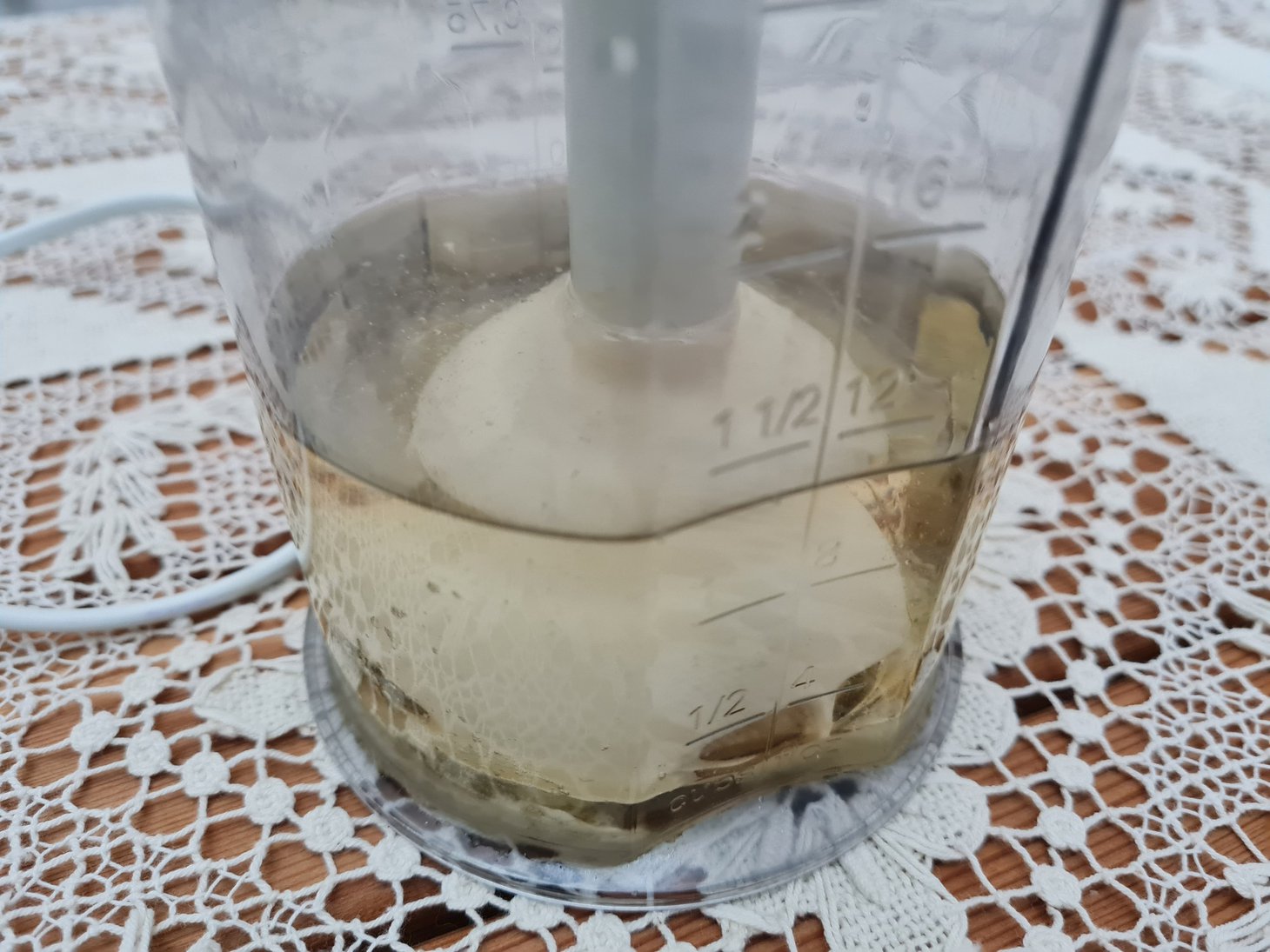 Теперь взбивайте, не поднимая блендер, пока масса не загустеет.
