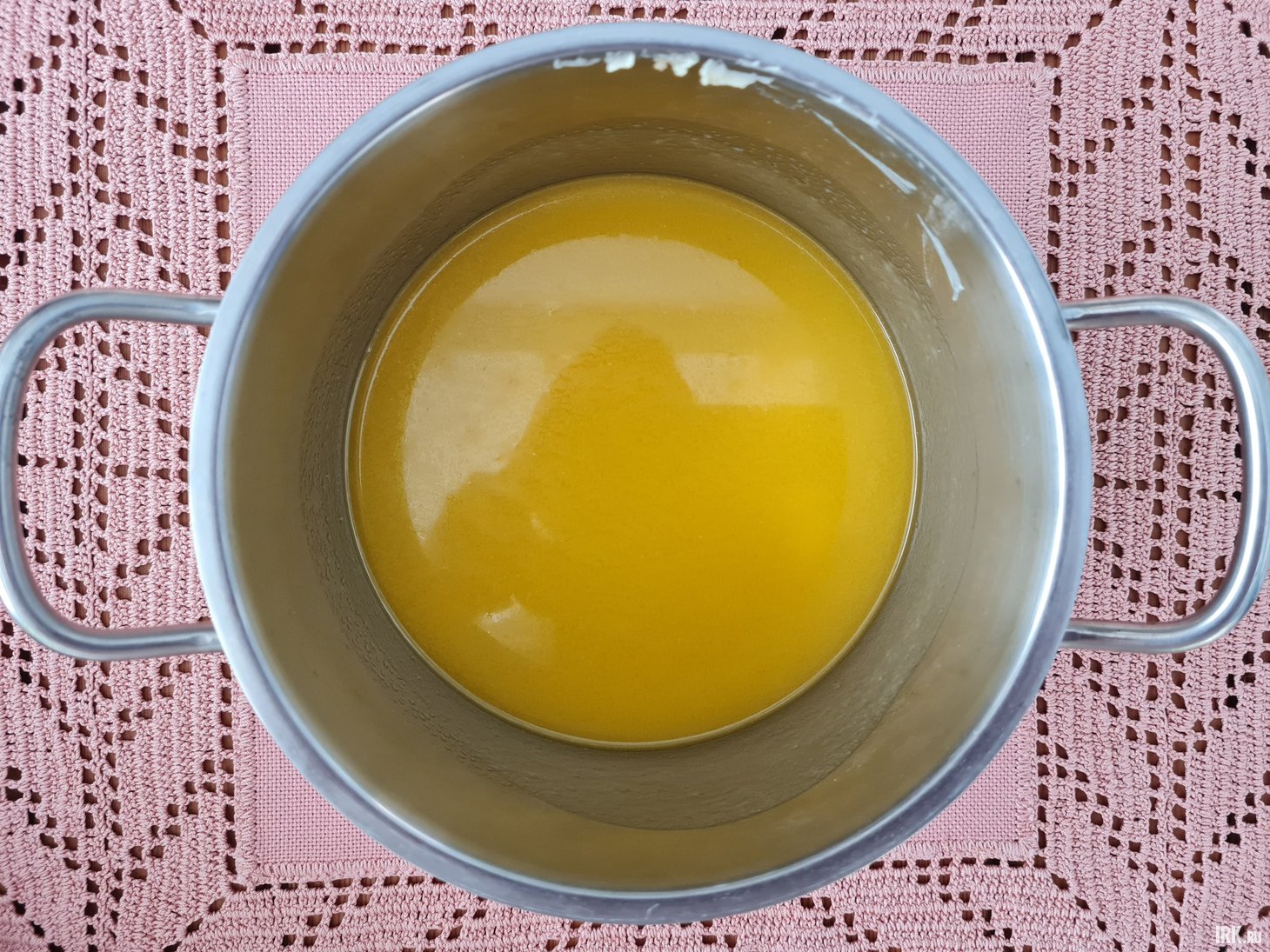 Пока опара поднимается, растопите всю пачку маргарина. Лучше брать «Домашний», «Сливочный», или «Для выпечки». Не кипятите его, так как от этого качество теста ухудшается.