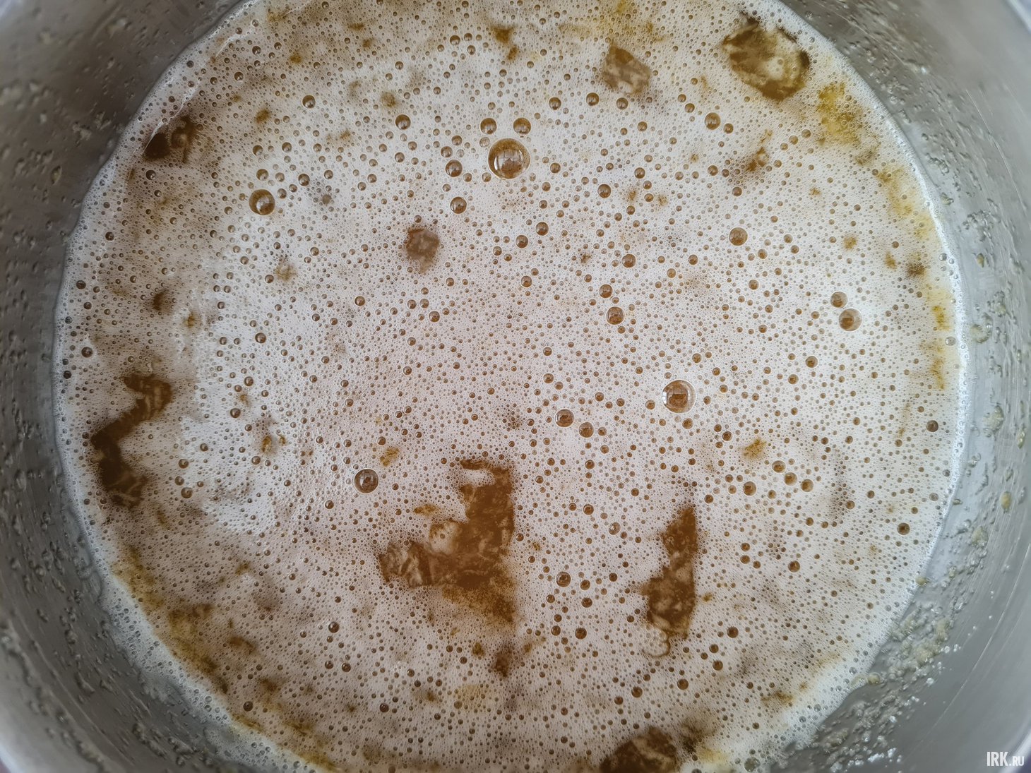 Сначала делаем опару. Для этого отмерьте нужное количество сахара, муки, молока и дрожжей. Молоко немного подогрейте. Возьмите кастрюлю объемом не меньше 5 литров, чтобы тесту было куда подниматься, и в ней и замешивайте.