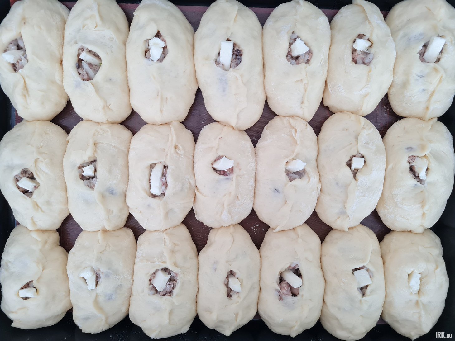Как формовать расстегаи, я уже писала в самом начале – положите начинку и защипните по краям, оставив дырочку. Теперь уложите швом вверх на смазанный растительным маслом противень (можно на коврик) с высокими бортами так, чтобы им было тесновато. От этого при расстойке в духовке пирожки будут стремиться вверх.