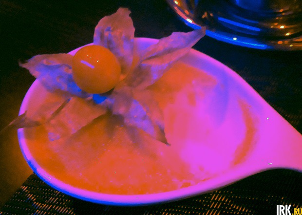 Сразу попрошу прощения у читателей за качество фотографий. В ресторане Sky lounge Irkutsk полумрак, и над столиками висят красные лампочки. Как ни старалась передвинуть еду, спасти ее от этих лучей не удавалось. Немного отфильтровать картинки мне помогали уже с помощью графических редакторов — так стало хотя бы понятно, что изображено на фото.