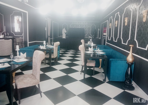 Уже второй раз я заставала ресторан абсолютно пустым. Причем была здесь в разное время: и вечером, и днем. Длинное безлюдное просторное помещение в холодных тонах навевает тоску и уныние. Впрочем, обстановка не понравилась бы мне, даже если б за каждым столиком сидела большая шумная компания: слишком много в интерьере наносного и неуместного пафоса — в псевдобархатных сидениях цвета зеленки, блестках на креслах, увесистых люстрах. Вот представьте себе, да, интерьер претендует на изысканность и серьезность, а на лестнице уборщицы распевают песни, внизу стоят хамоватые охранники, а по пути к раздевалке и туалету можно лицезреть нарисованную во всю стену девушку с голым задом.