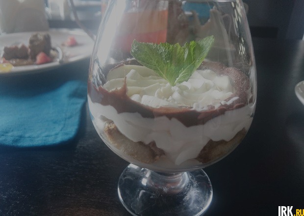 Вкус абсолютно не походил на традиционное тирамису. Хотя бы потому, что в нем отсутствовал кофейный сироп. А бисквит вместо этого пропитали шоколадным кремом, слой которого также можно было найти на дне бокала. Не могу назвать это решение удачным, тем более что меню обещало мне именно традиционный вкус. Крем также показался мне тяжеловатым, похожим больше на вязкое, густое и твердое сливочное масло, нежели на привычную сливочно-воздушную массу.