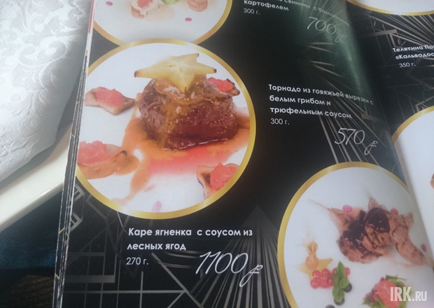 Меню откровенно скучное. Очевидно, что от идеи французской и авторской кухни владельцы решили отказаться. Цезари, роллы, винегреты, банальные десерты и абсолютно неаппетитные фотографии. Глаза в данном случае не разбегались, мне приходилось серьезно задумываться, что бы я тут хотела поесть. Заинтересовал суп-пена и пирожное «Тропик», которое часто появляется на фото в соцсетях ресторана. Но, увы, эти блюда я заказать не смогла – «баллоны» с пеной для супа не привезли, а от десерта меня отговорила Елизавета: «Проблемы с поставщиком ягод».