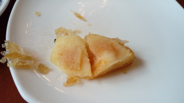 Вы ошибаетесь, если думаете, что это блюдо испортить невозможно. Снаружи вроде как всегда. Карамелька. Сладкая. Хрустящая. Тёплая. А фрукты внутри какие-то рыхлые и невкусные. Решила посмотреть на них без карамели и всё поняла… Гнилые, хорошенечко побитые жизнью плоды запечатали в карамель. Повар в ресторане прямо умничка, всё идёт в ход: и мясные обрезки, и фруктовые.