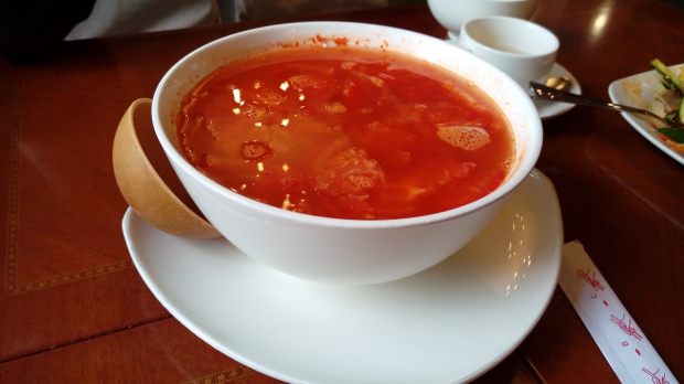 Говядина и томаты — вот и всё, что есть в супе, в чём, собственно, и заключается вся его прелесть. Помидоры были прекрасны: они придавали супу чудесный естественный летний и сочный вкус. Но жуткие сальные шматки говядины портили всё впечатление.
