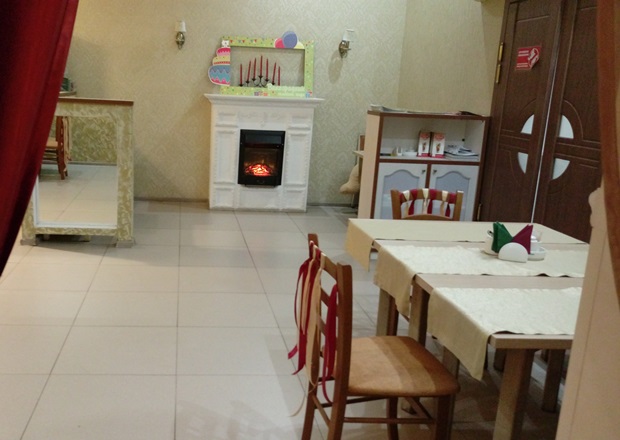 Очень удивило местоположение семейного кафе — помещение находится в тёмном дальнем углу автомобильной парковки. Внутри в пятницу никого не было, только один столик готовили к какому-то торжеству. Сразу обратила внимание на витрину при входе: там лежали очень красивые пироженки, особенно впечатлило изделие в виде овечки. Оказалось, всё, что лежит на витрине — муляж. И овечку я, конечно, могу заказать, но получу ее только на следующий день. Я вот расстроилась и сразу представила, как бы расстроился ребёнок. К чему вообще выставлять искусственные сладости на витрину?