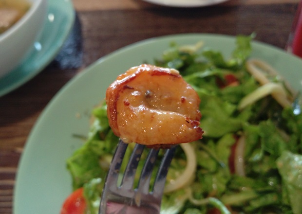 Цвет креветки — бледно-розовый с некоторой синюшностью — смутил сразу. Но что с ней не так, я поняла только откусив от нее кусок (догадаться можно было быстрее, просто даже в голову не пришло такое…). И буквально обомлела, чем не на шутку напугала подругу: у меня во рту оказалось нечто скользкое, клейкое, да еще и с некоторым душком, то есть просто размороженная не очень свежая креветка. Исследовала кальмар — он тоже будто не прошел термическую обработку.