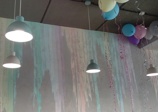 Сделав заказ, заняли столик и присмотрелись к интерьеру. Присматриваться было особо не к чему: шарики на потолке, несколько очень простых столов и стульев, шпаклеванные стены, «облитые» красками разных свежих цветов в тон бирюзовой стойке, в углу изображена сорока с чем-то ярким в клюве. Наверное, все, что здесь было интересного, унесла она…