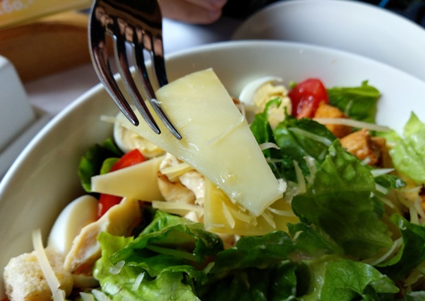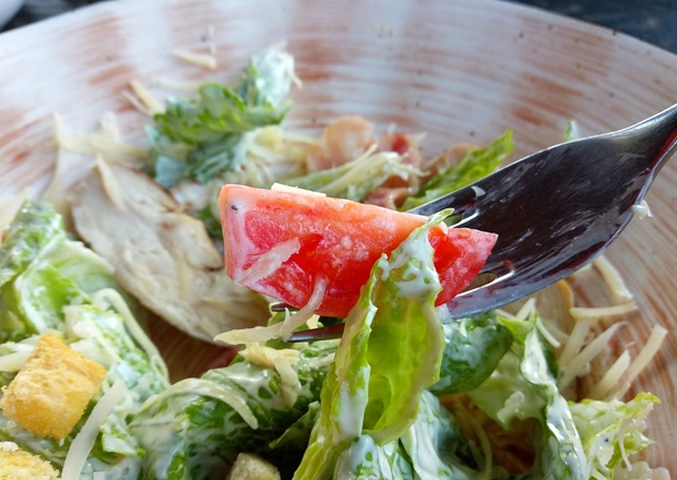 В маленьких помидорках черри – о, чудо! – чувствовался томатный вкус! Вот только форму они немного потеряли, как-то размякли. Из-за недочетов базовых ингредиентов – салата, заправки и сыра – «тройка» этому «Цезарю».