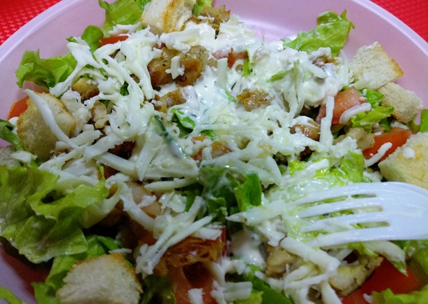 В кафе «Унга» повар решил использовать нестандартное решение для «Цезаря»: заключить курицу в панировку. Кусочки птицы были с пылу с жару, аппетитно похрустывали, но, увы, были совершенно пресными. В этот момент с грустью вспомнилась знаменитая курица одной сети кафе быстрого питания с семью приправами и специями…