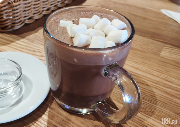 Обещала вам в прошлом обзоре взять что-нибудь противоположное черному кофе. Думаю, классическое какао идеально подходит под это определение. Я еще и зефирок попросила, чтобы совсем нежнятина. И вот что я вам скажу. Какао — это, конечно, здорово, особенно когда напиток такой, как здесь: ароматный, густой и насыщенно шоколадный. Но маршмеллоу — однозначно не моя тема. Красиво, эффектно, но очень получается сладко. Треть чашки, когда расплавился весь зефир, невозможно было допить — настолько было вязко и приторно. Не буду так делать больше.