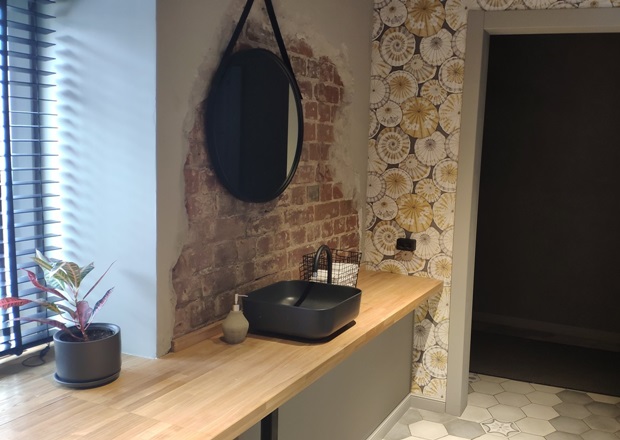 В миниатюрном гардеробе висят приятные на ощупь плечики. Диваны обиты ворсистой материей, к ним приставлены небольшие столики и аккуратные стулья. Много здесь и тяжелых темных деталей, и кирпичных вставок, но это как-то фоном, не замечается особо. Общее впечатление от интерьера — здесь светло и уютно.