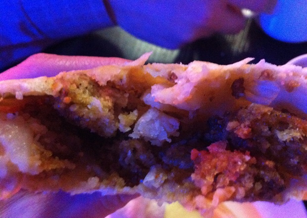 Нет, этот вид фалафеля отличался от предыдущего только наличием картофеля-фри, который, будучи спрессованным и мокрым от овощного сока, терял всякий смысл. Мы опять наблюдали жирную холодную кашу из продуктов — только теперь в лаваше.