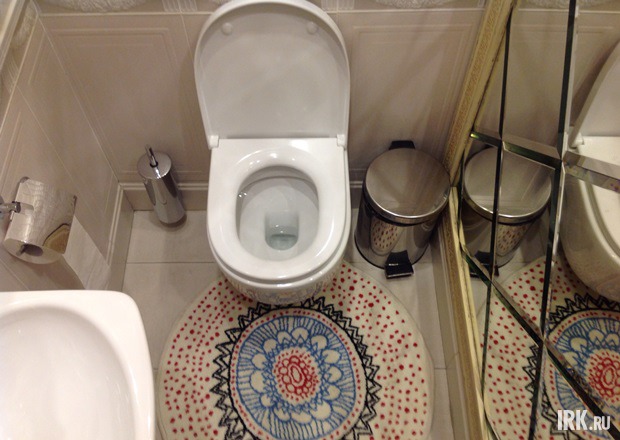 Перед тем, как подвести итог своим впечатлениям, скажу, что меня в Marussia просто потрясло. Когда я зашел в крошечный, но чистый, уютный и переполненный отражающими поверхностями туалет, я аж поперхнулся от нежности! Унитаз охранял совершенно домашний… коврик. И растрогал он меня совершенно до слез своей абсолютной неуместностью для заведения общепита. Милейшая деталь, которая и придает законченность всему образу Marussia.