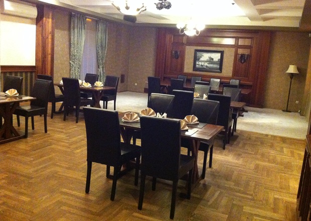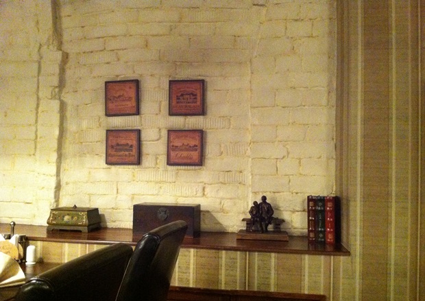 В интерьере «Олд кафе» преобладают четкие строгие линии, натуральные цвета и материалы: темное дерево и кожа. Много красивых деталей: массивные люстры, камин, картины, статуэтки, шкатулки, книги, канделябры – есть за что зацепиться глазу. Знаете, так раньше говорили: «Пойдем в приличное место», вот «Олд кафе» можно назвать приличным местом. Достойно, атмосферно и приятно здесь. Хочется держать спину и говорить об искусстве.
