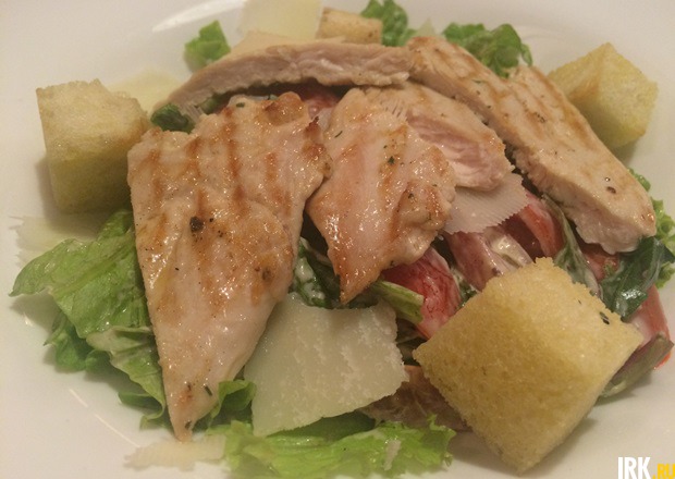 В меню представлена самая что ни на есть классическая европейская кухня безо всяких отступлений в сторону славянской, восточной, кавказской гастрономии, что так любят иркутские рестораны. Цены высокие, особенно поражает категория салатов, но и по кошельку позиции найдутся. Стейк можно попробовать за 880 рублей, курицу — за 420. Так что за 1000 рублей можно даже суметь объесться. Десерты по стоимости тоже в пределах допустимого. Мы сразу посетовали, что из меню исчез тирамису (это лакомство здесь готовили бесподобно, об этом писала) и вкуснейшие финики с маскарпоне. Но данному факту нашлось вполне логичное объяснение. Итальянский сыр перестали поставлять, повар один раз попробовал ввести в рецептуру продукт от другого производителя, но при первых жалобах на то, что десерты кислят, велел убрать их из меню совсем. На данный момент ресторан ждет поступлений от другого производителя, и, возможно, тирамису и финики вновь станут подавать.