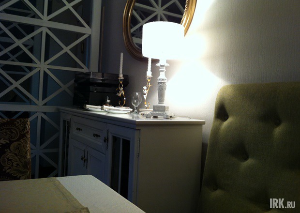 Пока ожидали свой заказ, огляделись. Всюду большое количество вензелей и амуров, странное сочетание цветов: оливковые стены, красный ковролин и чехлы на стульях с размашистыми золотистыми узорами. В целом все смотрится лубочно и небрежно. Единственное, что понравилось, — наличие проигрывателя и хорошая подборка музыки (особенно порадовала Шаде).