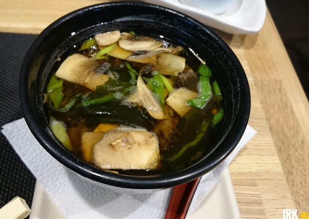 Так называемые европейские наборы блюд показались совсем неинтересными: картофель-фри, блинчики, медальоны — все жареное, высококалорийное. Я выбрала японский ланч №2 и мисо сиру. С супом чуть было не возникла проблема: забыла заказать его сразу, попросила принести, когда основная часть бизнес-ланча уже была на столе. Официант сказала, что тогда придется платить за него отдельно. Причем сказала это так серьезно — я уж было подумала, что она имеет в виду полную стоимость в два раза выше указанной в предложении. Оказалось, что мне просто провели блюдо спецзаказом.