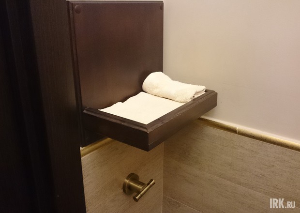 Про туалет скажу коротко: здесь идеальная чистота и порядок. Ровно разложенные полотенца, сияющая раковина и зеркала, пустая урна, график уборки в порядке. Прекрасно.
