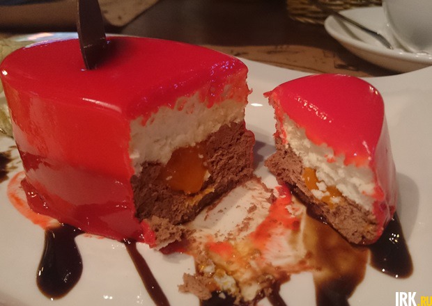 Десерты «Тренд бар» не готовит, а заказывает в кондитерской. Это выяснилось, когда мы увидели в другом заведении точно такие же пирожные, как здесь. Тем не менее, десерты понравились, они были свежие и вкусные. «Два шоколада» вообще выше всяких похвал: легкие муссы, шоколадный и сливочный, разбавляет облепиховый джем с кислинкой. Приятное и очень удачное сочетание. Клубничная желейная оболочка тоже вкусная и придает десерту особенную эффектность.