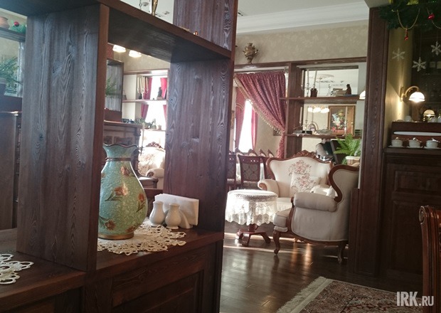 В ресторане постарались воссоздать обстановку русского дома конца 18-начала 19 века. Старинное зеркало, пианино, самовары — детали, специально заказанные и отреставрированные для интерьера. Пианино работает, на нем иногда играют приглашенные музыканты из Филармонии, правда, жалуются на плохой звук: настроить инструмент идеально так и не получилось. У электрического самовара с баранками проходят традиционные чаепития, а в зеркало с вековой историей побаиваются заглядывать суеверные люди. Благородно-возвышенное настроение создает фоновая музыка — русские романсы, Римский-Корсаков, Чайковский и… Пелагея.