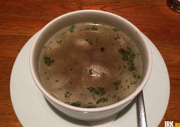 По вашему желанию пельмени могут запечь с сыром, подать просто в бульоне или со сметаной. Мы взяли с бульоном, вкус которого не спасла даже сметана. Это была просто кипяченая вода, в которую насыпали сухую зелень. Что касается пельменей, мясо было невкусным: ни сочности, ни аромата. Фаршевый комочек распадался, тесто тоже было очень близко к разваренному состоянию. Зато повар явно решил взять не качеством, а количеством. Пельменей было очень много. Только вот желания их доедать не было.