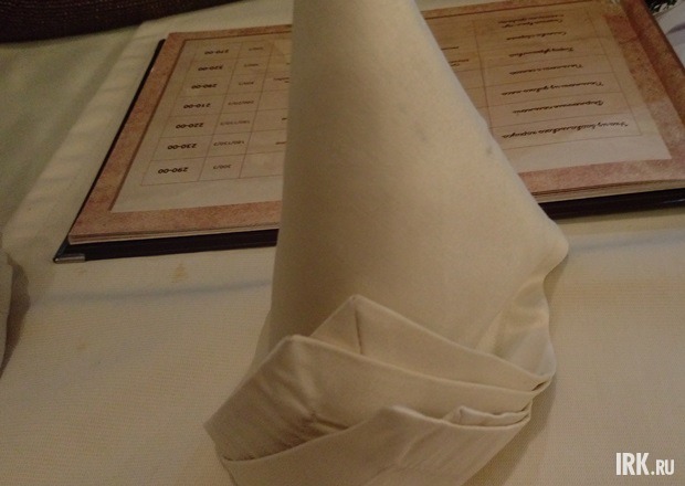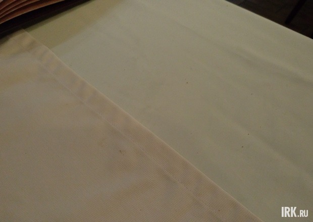 Мужчина достал два экземпляра, сунул нам в руки и удалился. Мы сидели в лёгком трансе, молча, по инерции перелистывая меню. Потом я быстренько записала диалог в блокноте, пока он был свеж в памяти, сфотографировала грязные салфетки и пыльную скатерть, и мы ушли. Заказывать блюда из основного меню, во-первых, после такого хамства было бы нелогично, во-вторых, опасно для здоровья, в-третьих, бессмысленно — все необходимые выводы о ресторане я сделала.