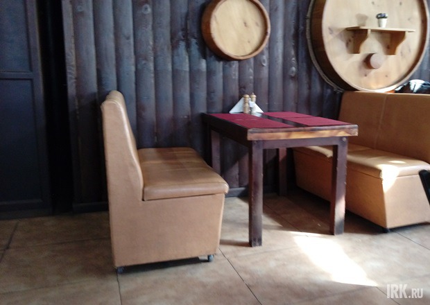 В этом зале я уже была, когда писала про солянку. Тут мы обнаружили гардероб, разделись и прошли к столу. Появилась довольно милая девушка-официант в тельняшке, спросила: «Вы у нас покушать желаете?». Мы снова растерянно посмеялись странности вопроса. И тут перед нами вырос тот самый человек, который у кассы спросил нас про цель. Оказывается, он так за нами и шёл.