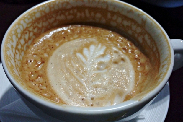 Настроение и правда улучшилось при виде глубокой круглой чашки. Её доверху наполнили кофе со взбитым молоком, на котором опытная рука нарисовала очень симпатичную «розетту» (это вот листик).